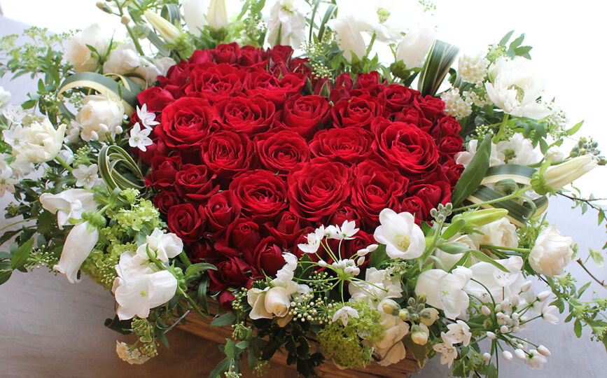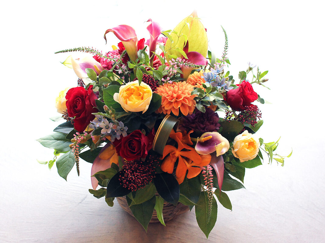 丁寧に選び抜いた花材をバランスよく束ね、どなたにも失礼のない落ち着いた佇まいを大切にしています。離れていても想いがしっかり伝わる、心を込めた供花としてご利用いただけます。