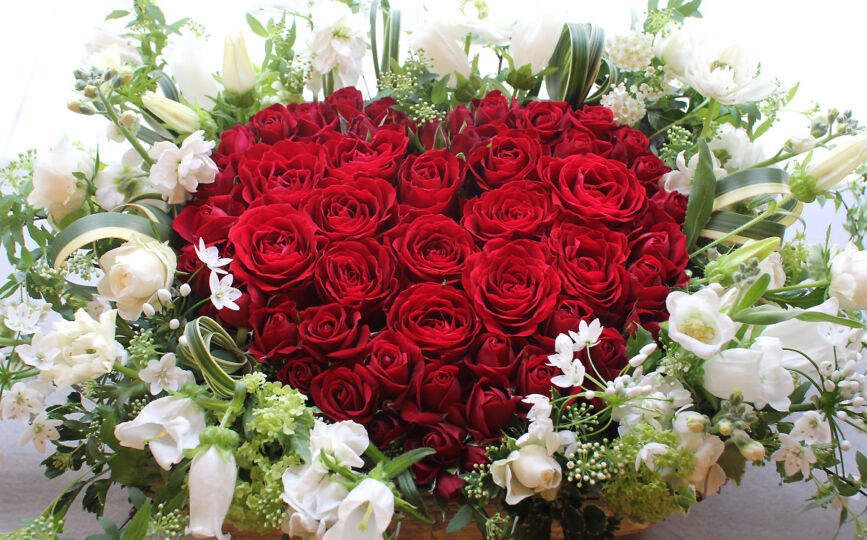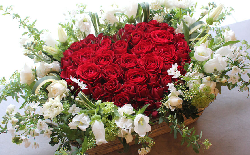 ハートは愛とロマンスの象徴です。真っ赤なバラで作ったハートは、その名の通り、愛情や情熱を表現するのに理想的な花です。ロマンティックな贈り物として、特別な人に贈ることで愛情を強調することができます。