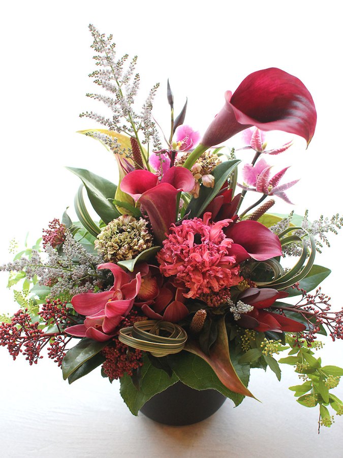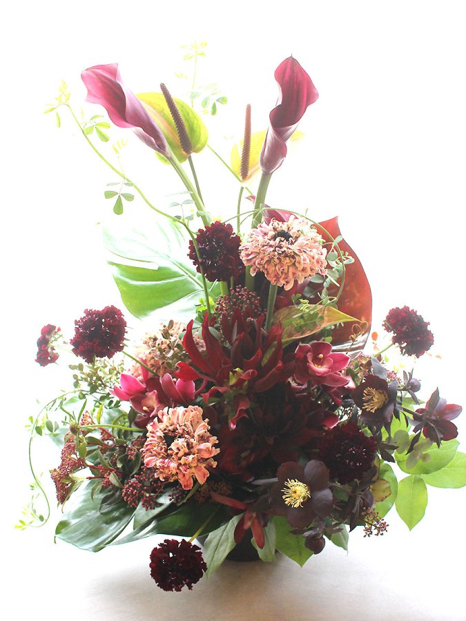 花と花が重なり合わないように立体感のあるスタイルが特徴的