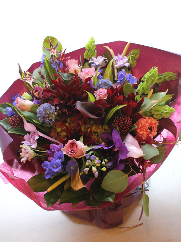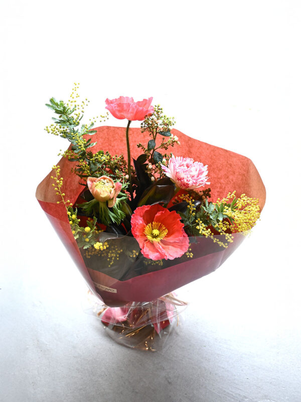 丁寧に選び抜いた花材をバランスよく束ね、どなたにも失礼のない落ち着いた佇まいを大切にしています。離れていても想いがしっかり伝わる、心を込めた供花としてご利用いただけます。