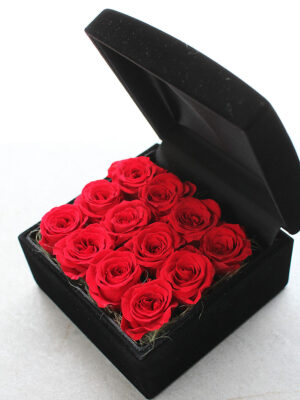 「JEWEL(ジュエル)」は、本物のジュエリーボックスの輝きに、永遠の美しさを持つプリザーブドローズを閉じ込めた、サプライズのための究極のフラワーギフトです。